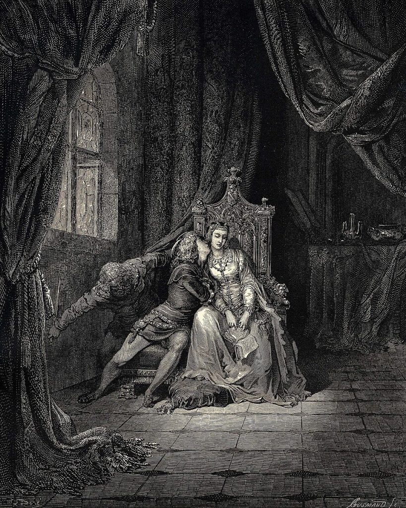 Gustave Doré, Francesca et Paolo, 1861, eau forte, Bibliothèque Nationale de France. “Nous étions seuls et sans aucune défiance…”