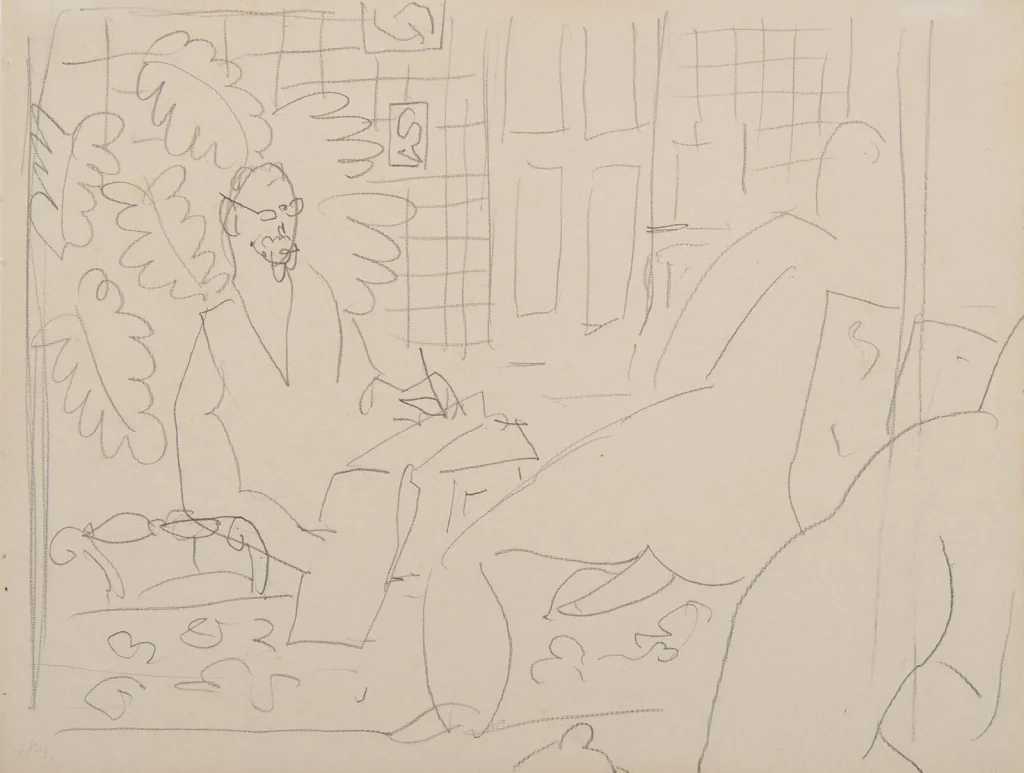 Ainsi, chez Matisse, le désir ne s’impose pas comme chez Picasso : il se suspend, se sublime en orchestration visuelle – une paresse créative où la volupté flotte, intouchable, transformant la femme en motif éternel d’une symphonie de lignes et de couleurs. Loin de posséder le corps, Matisse le rêve, le fait danser dans l’espace blanc de la feuille.